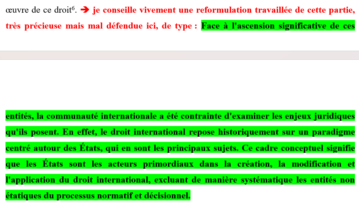 • Reformulation de passages mal écrits, écrits par ChatGPT ou peu académiques